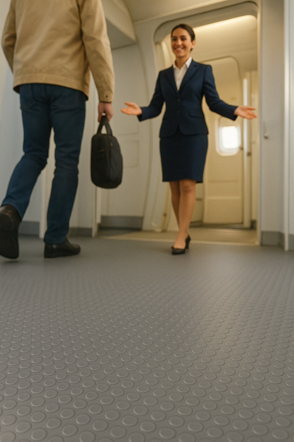 Our PVC aircraft flooring combines lightweight durability, flame resistance, and superior slip performance, ensuring comfort and safety on every flight.