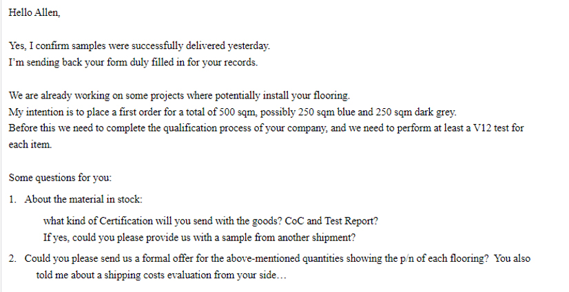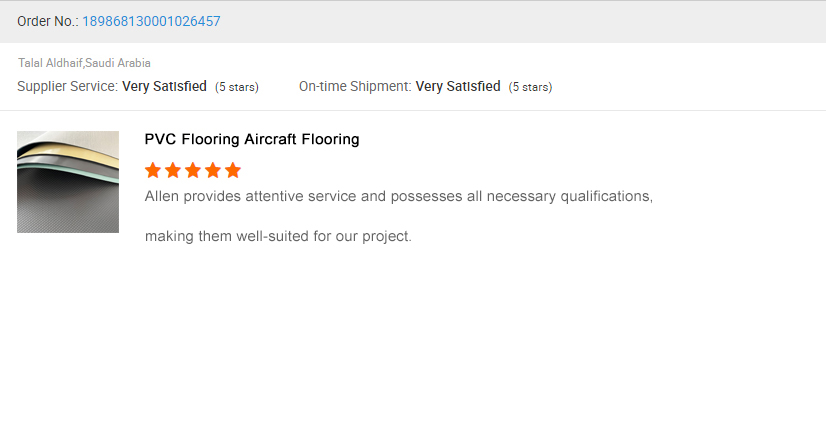 Before installing the PVC Aircraft flooring, spread it out for 1-2 days to allow the PVC flooring to fully acclimatise to the environment.